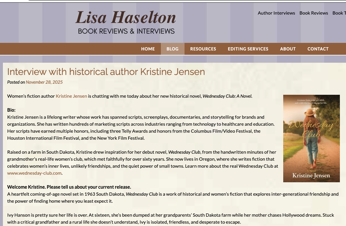 This is a feature article in the Brookings Register from Brookings, SD — my hometown and the birthplace of the real Wednesday Club that inspired the novel.